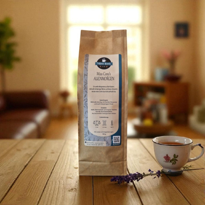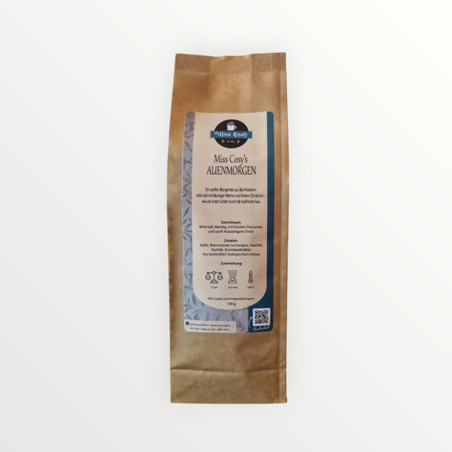 „Auenmorgen“ ist dein sanftes Morgenritual: eine naturverbundene Kräuterkomposition, die nach frischer Wiese und stiller Flussufer-Luft duftet. Apfel bringt eine zarte Süße, Lemongras einen klaren Zitrushauch; Fenchel rundet weich ab, während Kamille florale Wärme schenkt. Brennnessel und Brombeerblätter legen eine grüne, erdige Note darunter – wie ein Spaziergang durch taukühle Auen. Koffeinfrei und aus kontrolliert biologischem Anbau, für einen friedlichen Start in den Tag.