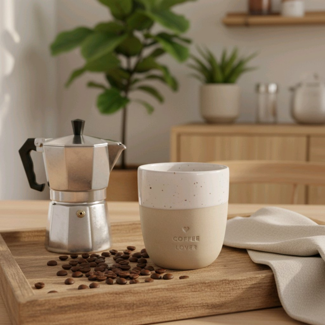 Der Coffee Lover Becher aus hochwertigem Steingut ist gemacht für alle, die Kaffee nicht einfach trinken, sondern genießen. Für den ersten Schluck am Morgen, die kleine Pause zwischendurch oder den Lieblingsmoment am Nachmittag.