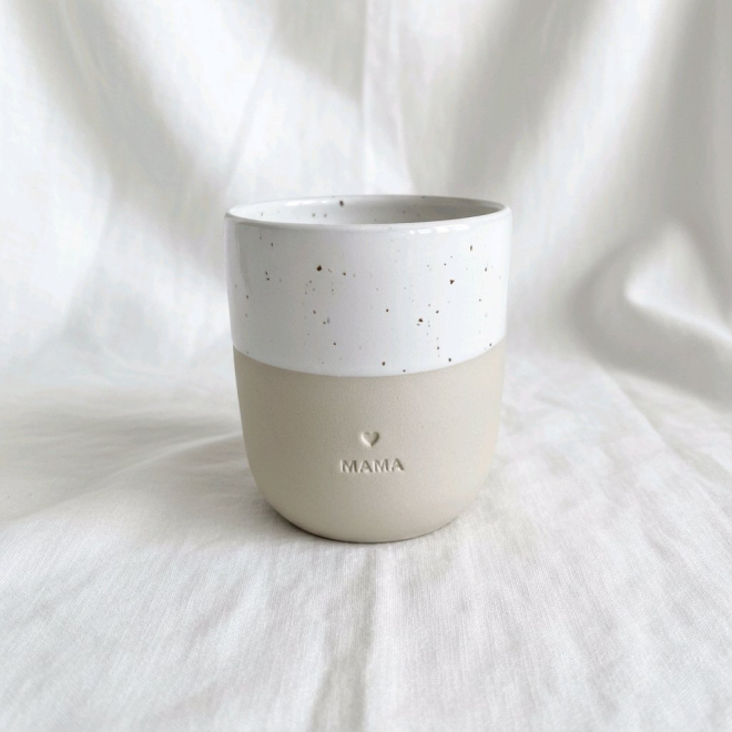 Jeder Becher entsteht in liebevoller Handarbeit in einer kleinen Töpferei in Portugal. Genau diese sorgfältige Fertigung macht jeden einzelnen einzigartig – leichte Unterschiede in Form und Glasur erzählen ihre ganz eigene Geschichte. Die feine Blindprägung „Mama“ verleiht dem Becher eine besondere Tiefe und macht ihn zu einem wunderbaren Geschenk für Mütter, die Authentizität und echtes Handwerk schätzen.