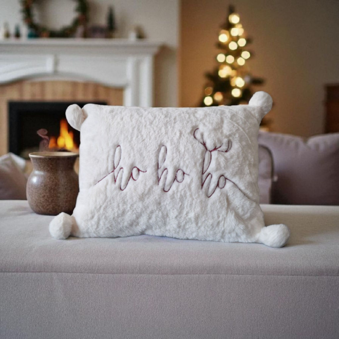 Mit seinem fröhlichen Weihnachtsdruck auf kuschligem weißem Stoff bringt das dekorative Kissen Ho Ho Ho sofort festliche Stimmung in dein Zuhause. Ob auf der Couch, dem Lieblingssessel oder im Bett: Dieses Kissen ist wie ein kleines Stück Weihnachtsfreude, das jedes Zimmer wärmer wirken lässt.