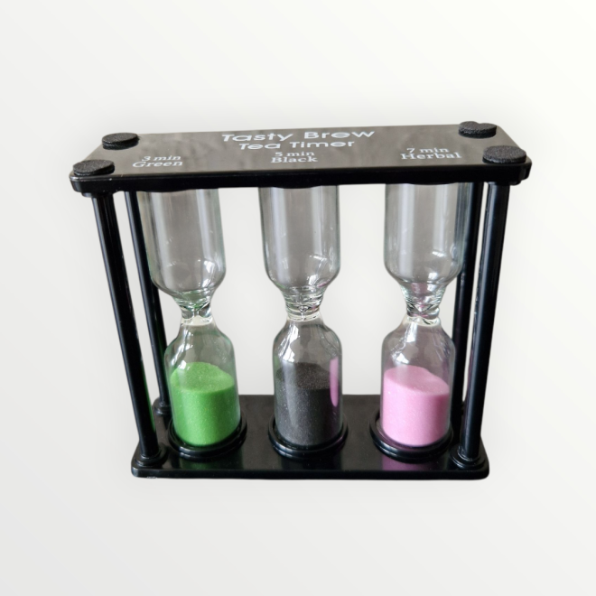 Mit dieser praktischen Sanduhr gelingt dir die perfekte Tee- oder Kaffeezubereitung. Drei separate Timer mit verschiedenfarbigem Sand zeigen dir die Brühzeiten von 3, 5 und 7 Minuten an. So findest du immer die ideale Ziehzeit für dein Lieblingsgetränk.