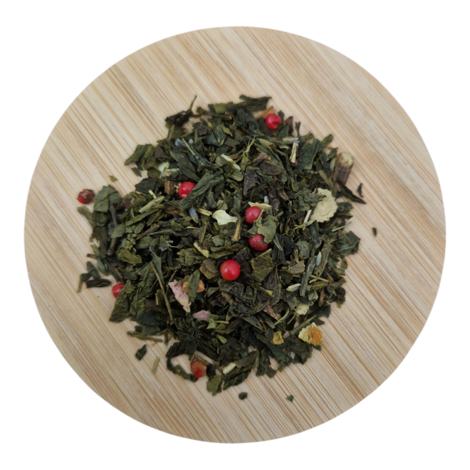 Wenn der Winter sein schönstes Gedicht schreibt...Feiner China Sencha und edler Jasmin Silverneedle bilden die grüntee-zarte Basis. Zimtstangen, Süßholzwurzel und rosa Pfeffer sorgen für sanfte Würze, während Orangenschalen und Orangenaroma süße Fruchtigkeit schenken. Rosen- und Lavendelblüten runden die Komposition blumig-elegant ab.